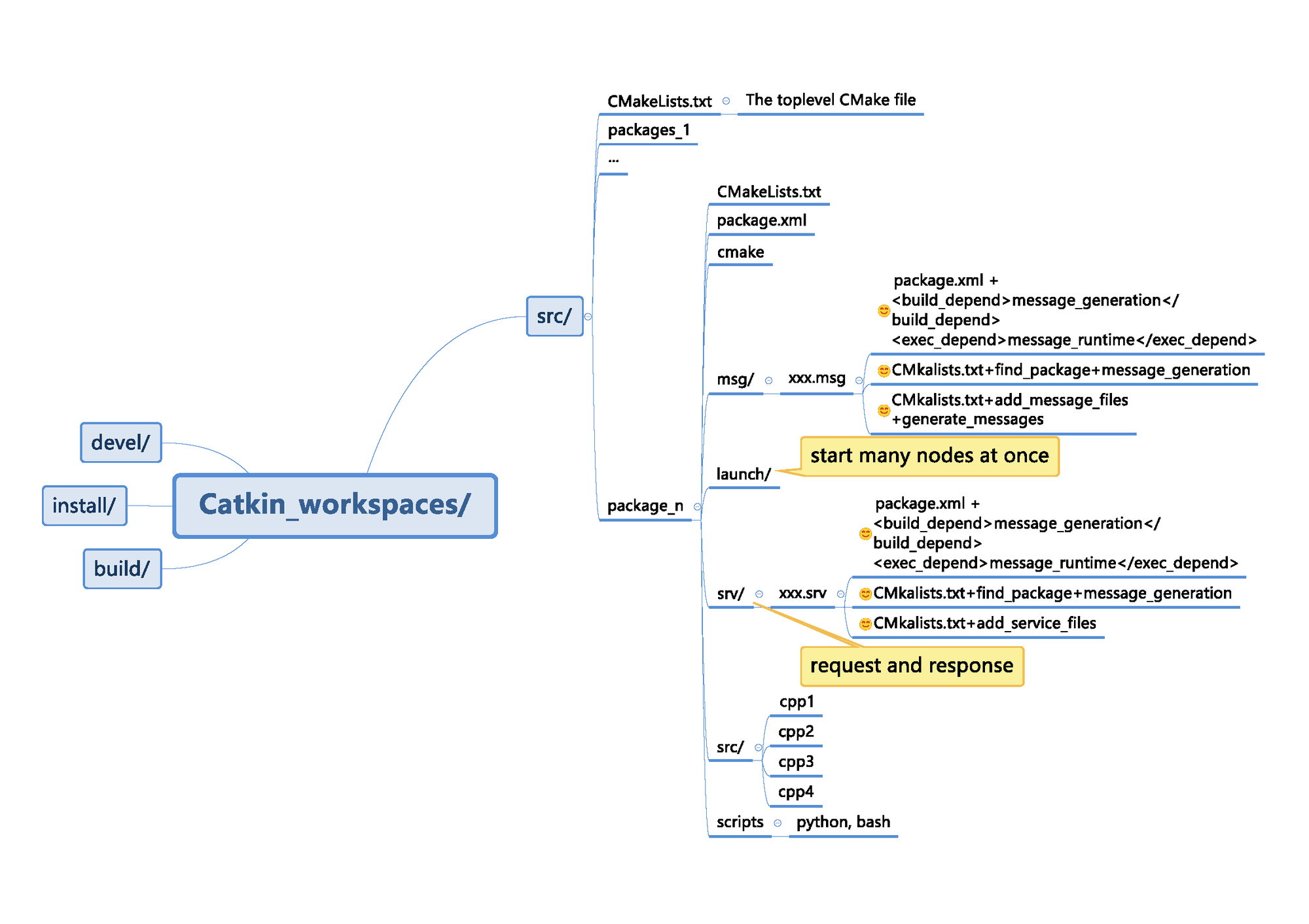 # creating two default versions of these two configuration files: package.xml and CMakeLists.txt.